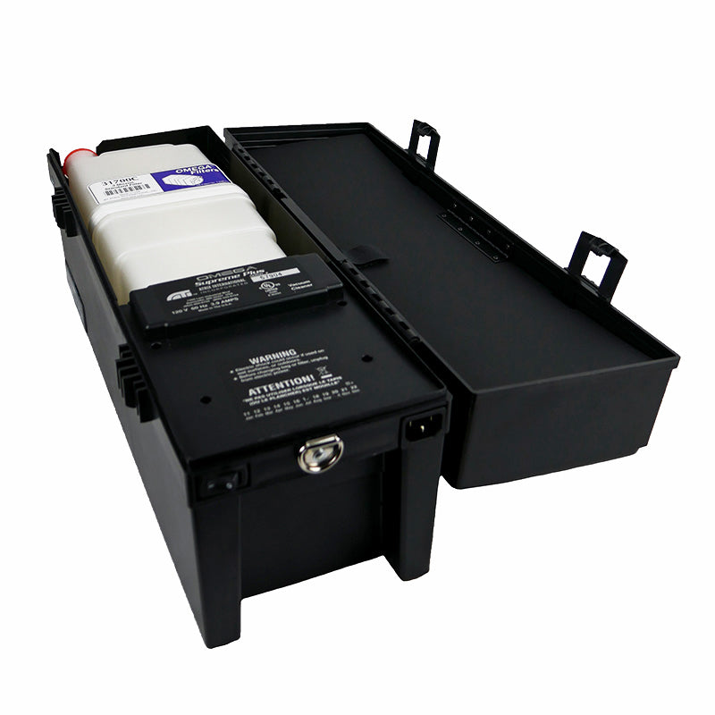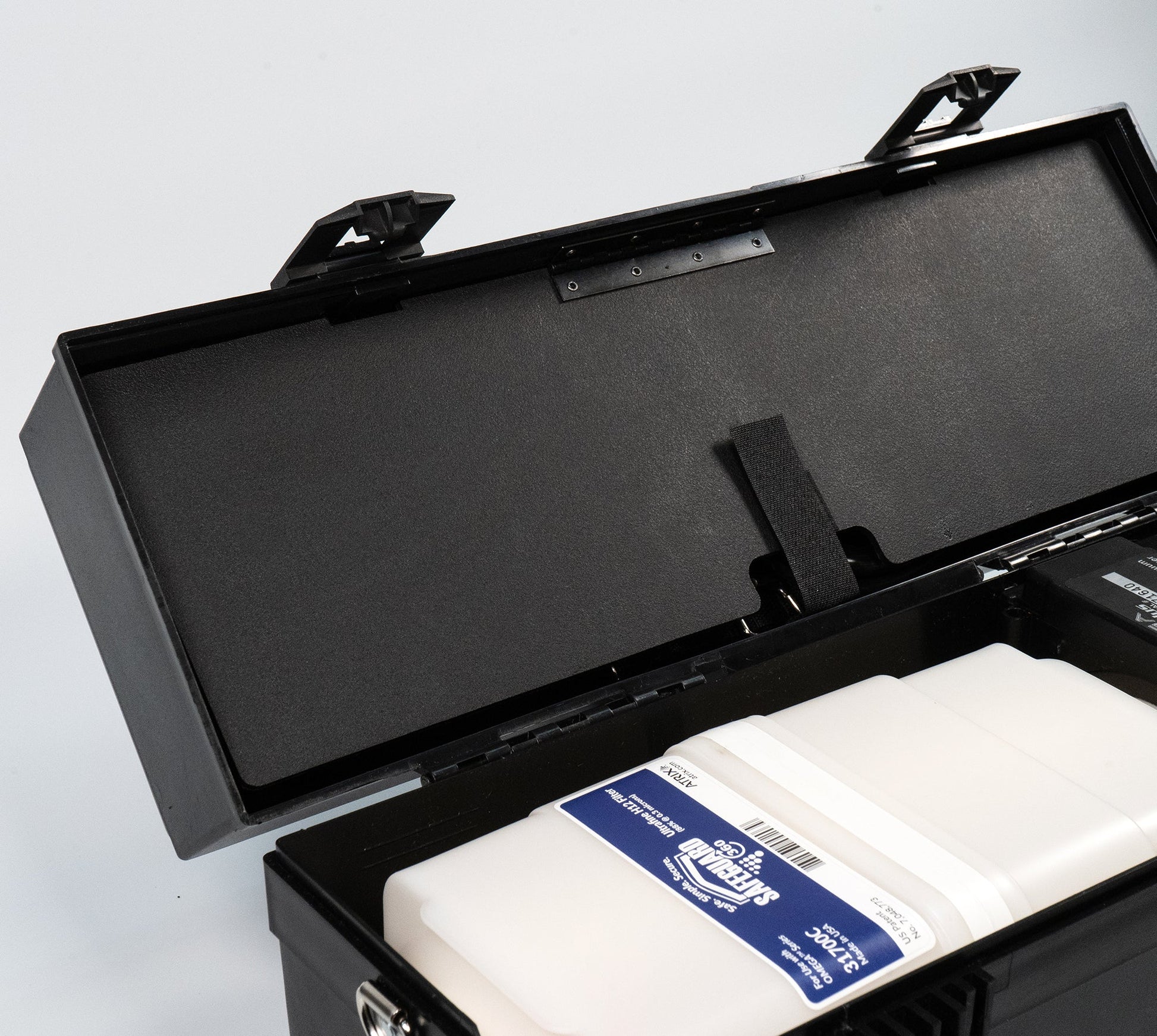 VACOMEGAS comprend un rabat en plastique articulé avec fermeture velcro sur le couvercle, remplaçant les simples sangles velcro du modèle VACOMEGA.