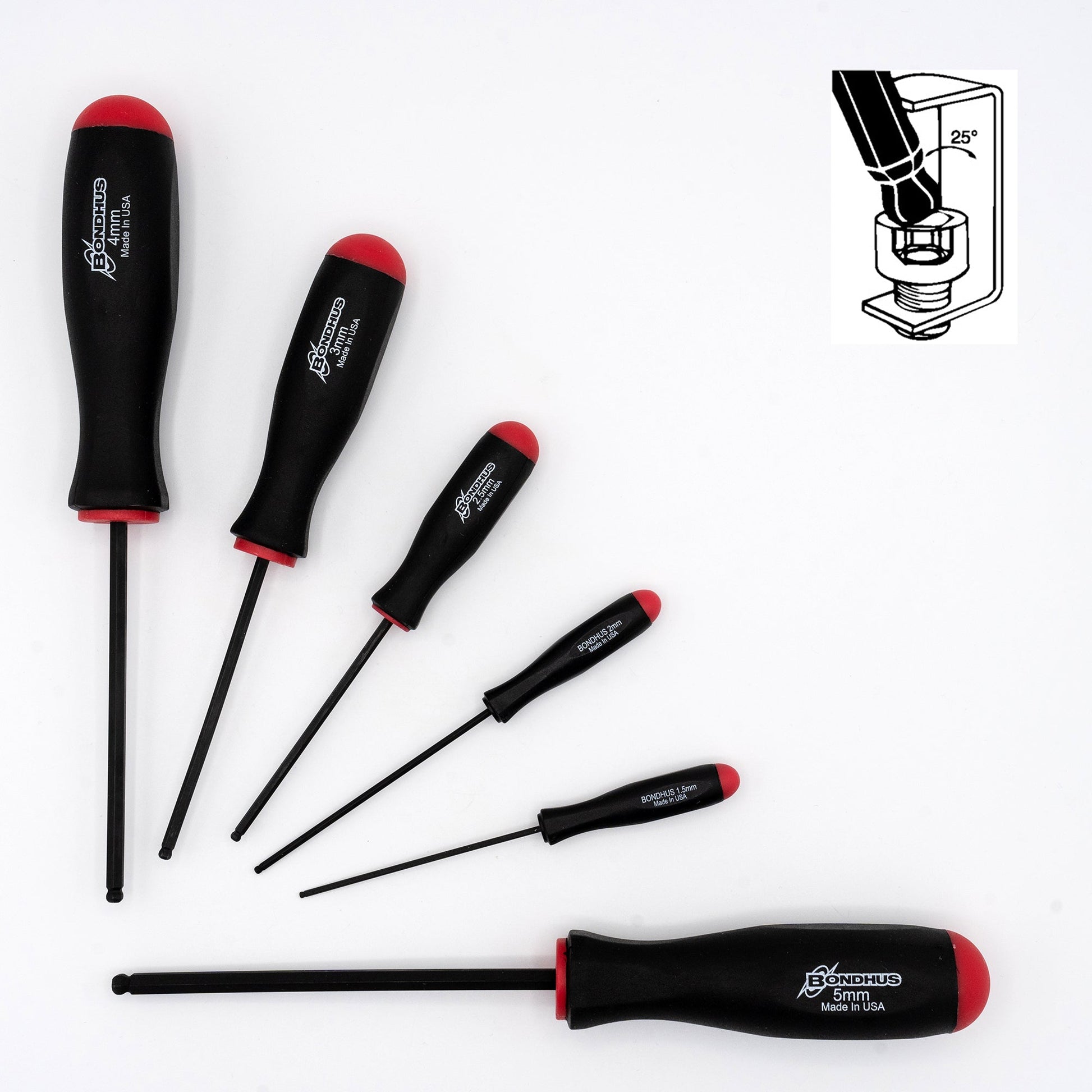 Jeu de 6 tournevis à tête sphérique métriques Bondhus 10686, tournevis hexagonaux métriques à extrémité sphérique de 1,5 mm à 5,0 mm