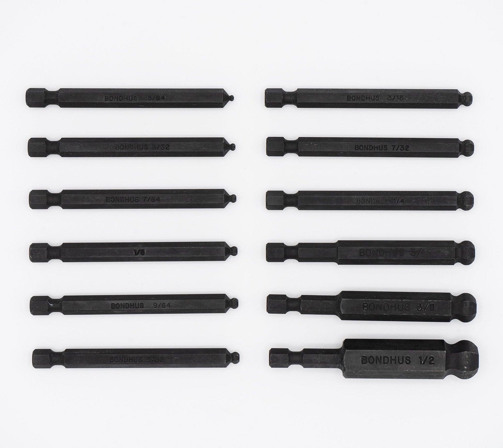 Jeu de 12 embouts hexagonaux à tête sphérique Bondhus 10836, de 5/64 à 1/2 pouce.