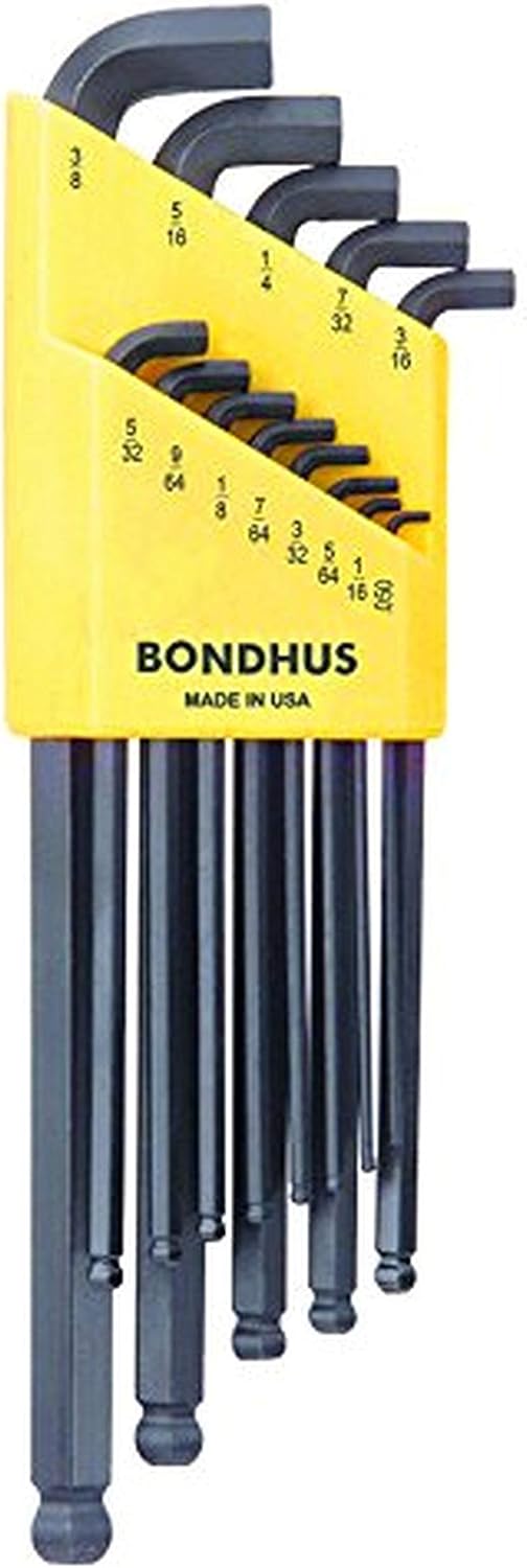 Jeu de clés hexagonales métriques courtes à bout sphérique Bondhus 16599 avec porte-clés en L Bondhex. Comprend les tailles suivantes : 1,5 mm, 2 mm, 2,5 mm, 3 mm, 4 mm, 5 mm, 6 mm, 8 mm et 10 mm.