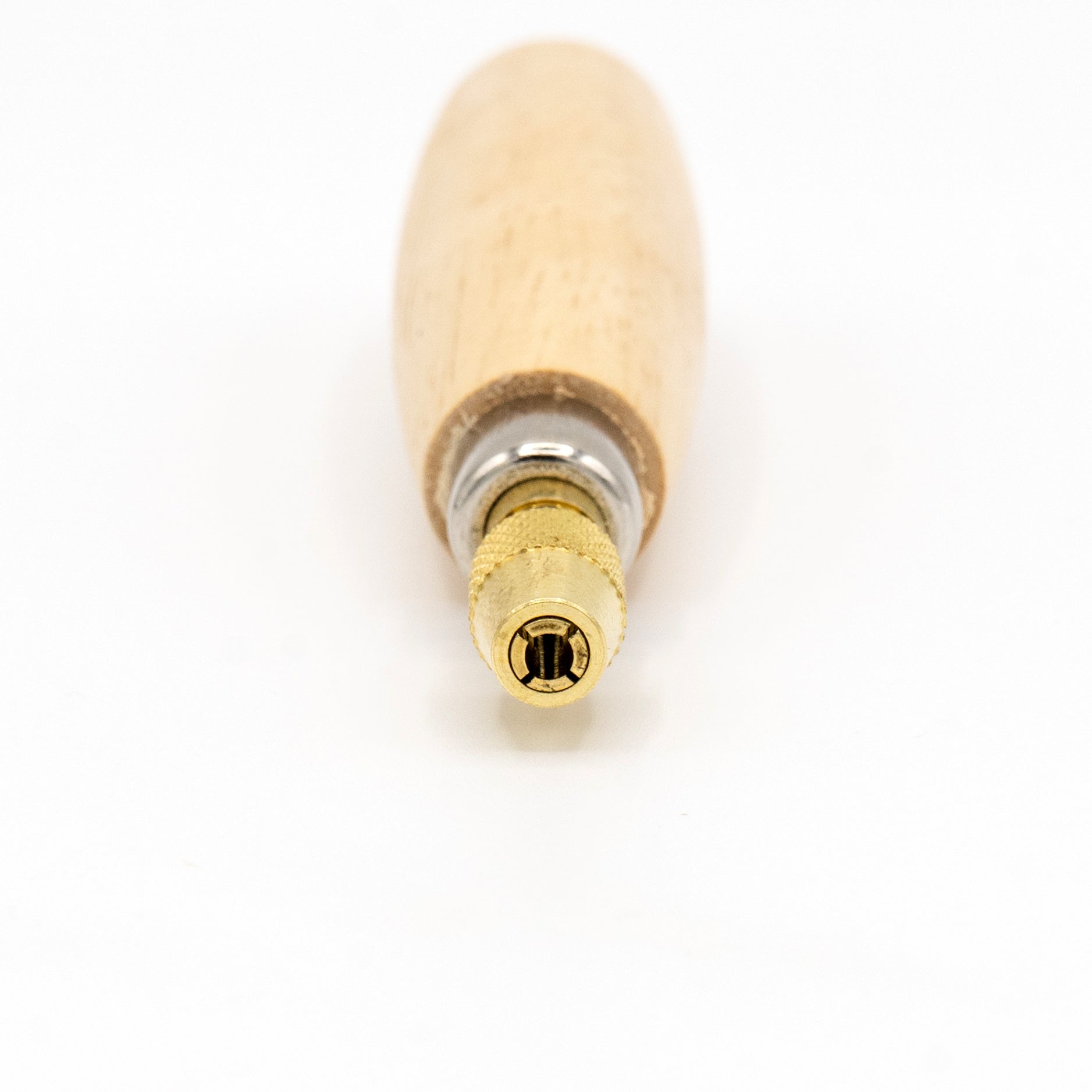 Poignée disponible séparément sous la référence Crawford 83942 : poignée en bois avec mandrin en laiton pour limes.