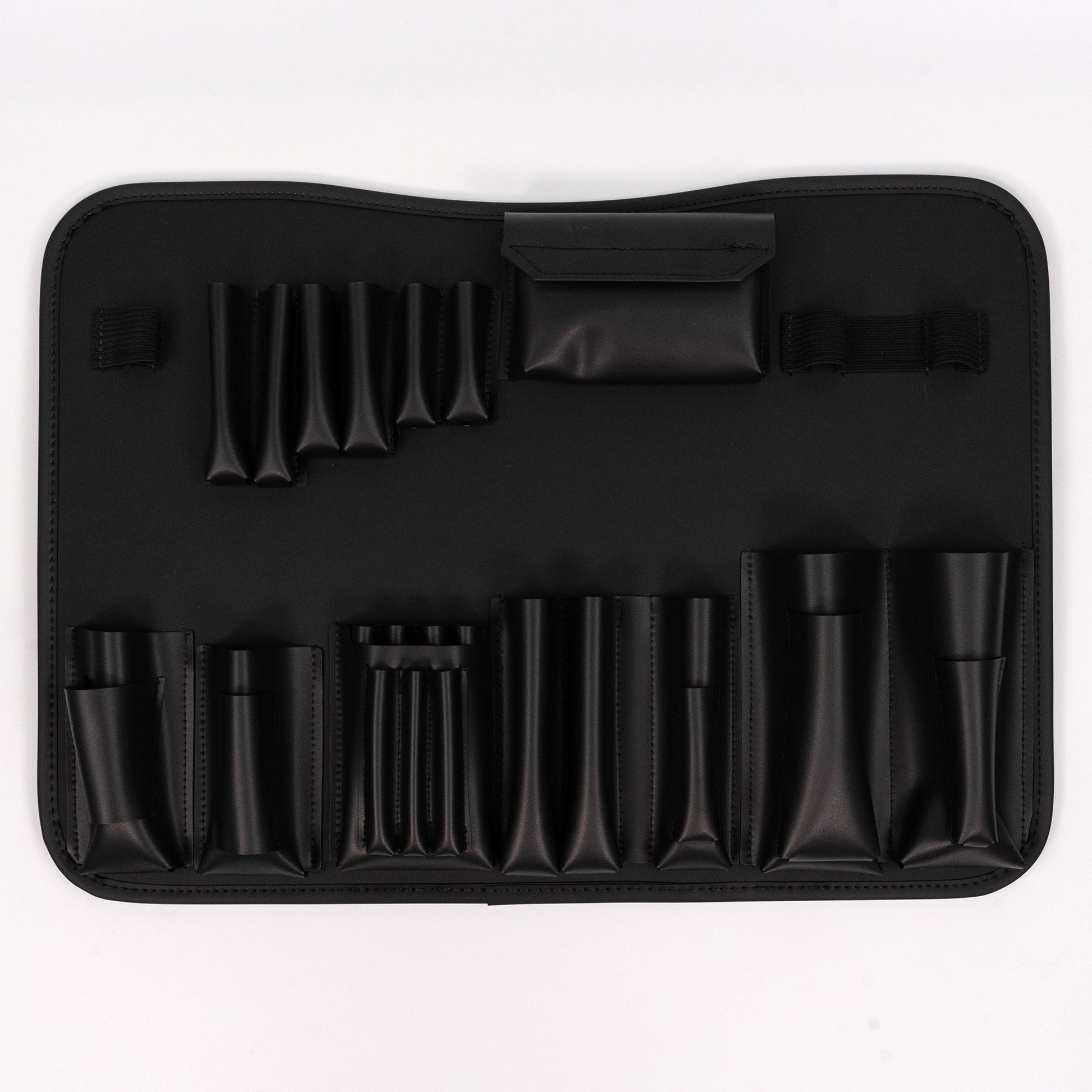 La palette à outils X Bottom comporte 25 poches individuelles, 3 supports élastiques et une pochette pour pièces avec fermeture velcro. La pochette mesure 4-1/2' x 2-1/2' x 1'.